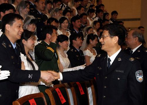 孟建柱會見參加公安部春晚集體婚禮的100對新人