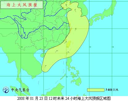 中新網(wǎng)1月23日電 中央氣象臺(tái)今天上午發(fā)布海上大風(fēng)預(yù)報(bào),稱(chēng)中國(guó)東部和南部海域?qū)⒂?-8級(jí)大風(fēng),提醒上述海域航行、作業(yè)的船舶和人員應(yīng)回港避風(fēng),注意航行安全。