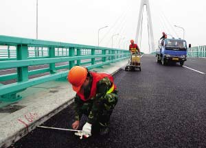 杭州灣大橋是一座“數字化”大橋,平均每公里就有1對監視器,中央監視系統時刻監控大橋的維護管理,大橋的“身體健康”在實時掌握之中。(劉開明)