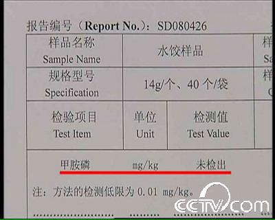 這家工廠的檢驗記錄顯示,每一批次的蔬菜在進廠前都會由河北檢驗檢疫部門進行抽檢或由企業送檢。相關的檢測結果顯示,在生產2007年10月1日和10月20日兩個批次的豬肉白菜餡餃子之前都進行過相關的檢驗,洋白菜、大白菜以及韭菜、姜、蒜的檢測中都沒有檢出甲胺磷等高毒高殘留農藥。