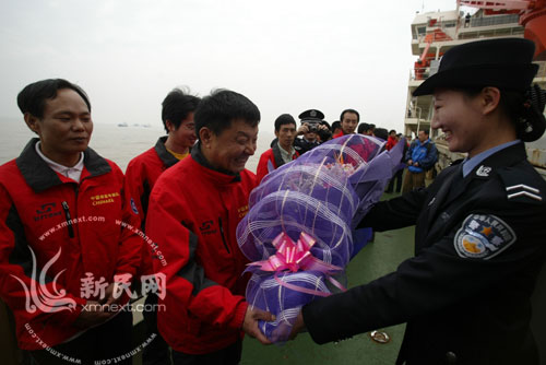 吳淞邊檢站向新民網介紹,邊檢民警登輪后向雪龍號領隊魏文良獻上了鮮花,歡迎他們回國,而科考隊員還利用民警辦理入境手續的間隙,向民警展示了難得一見的長在石頭上的“南極地衣”。(戴穎敏)
