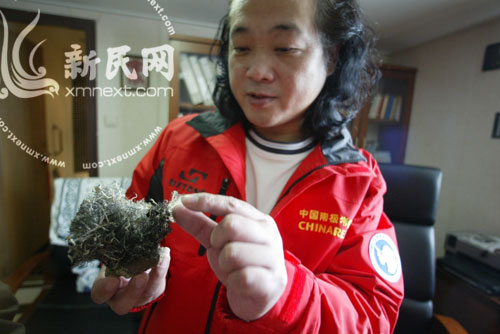 "雪龍號"抵達上海 科考隊員展示"南極地衣"(圖)