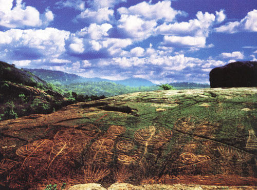 在南北長22.1米、東西寬15米的一塊混合花崗巖構成的覆缽狀山坡上,分布著三組線條寬而淺,粗率勁直,作風原始,斷面呈“V”形,面壁光滑,以石器敲鑿磨制而成的巖畫。這是我國迄今發現的最古老時代巖畫,是東南沿海地區首次發現的巖畫,是惟一反映農業部落原始崇拜內容的巖畫,距今約4000年。著名考古學家蘇秉琦先生稱之為我國最早的一部天書。