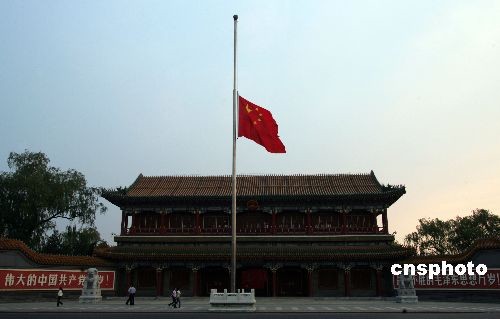 三個年輕的孩子在人們的注目下,緩緩升起國旗,而后緩緩降半旗。也就在此時,周圍寂靜一片,人們能清晰聽見旗纜磕擊旗桿的聲音,能清晰聽見鼻頭發酸輕輕抽泣的聲音,除此之外,別無他響。