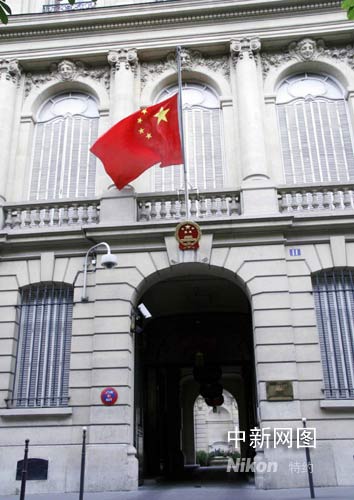 中新網巴黎5月19日電(記者 吳衛中)今天的巴黎云低風靜,上午八時二十八分,中國駐法國大使館舉行儀式,深切哀悼“五•一二”汶川地震的遇難同胞。
