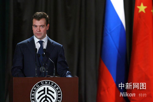 中新網(wǎng)5月24日電 俄羅斯總統(tǒng)梅德韋杰夫今天下午三時(shí)許在北京大學(xué)發(fā)表演講。