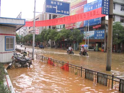 該繁華街區密集了數百個商場和店鋪。在府前路開店的一名伍姓店主一臉無奈地對記者說,近幾天來,他一直都忙碌著為端午節而進貨。按照往年的慣例,他都得進6萬多元的貨物。28日凌晨2時,他趕到自己所開店位置時,發現店門的一半位置已被洪水淹沒。沿街走過一段齊腰深的水路進店后,驚訝地發現,店內用來準備過節的貨物全被洪水浸泡。伍某說,這回他店內損失估計在7萬元以上。