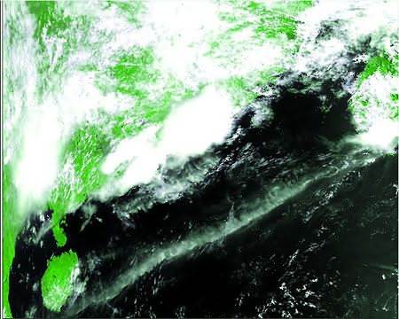 昨日上午10時16分10秒,廣州氣象衛星地面站成功接收到風云三號01星的第一幅衛星云圖。云圖顯示,昨日廣東佛岡、龍門、河源三地出現了大暴雨,不少地區有強降水。