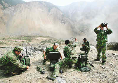 25日15時,水電部隊208名官兵到北川后徒步向唐家山現場集結。