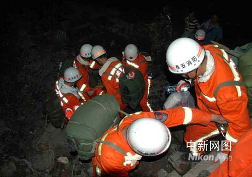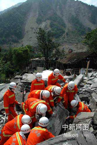 ——山東省消防總隊官兵徒步進入汶川映秀鎮搶險記
