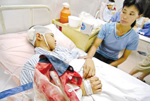 昨天下午,記者在吳川人民醫院了解到,19名受傷師生中,二年級的寧康權和四年級的寧康高,傷勢尤為嚴重,兩人的頭部分別被縫了1針和13針;其余受傷者中,多數人基本上都是手、腿等部位被割,傷勢較輕,沒有人有生命危險。(記者關家玉 通訊員林明聰 、王裕攝影報道)
