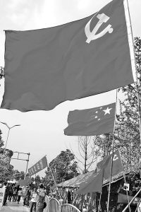 飄揚(yáng)的紅旗在災(zāi)區(qū)隨處可見(jiàn)(張雷/攝)