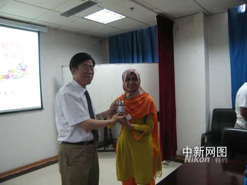 蘭大一院院長將甘肅敦煌的工藝品贈于巴基斯坦醫療隊以作紀念。作者:劉薛梅