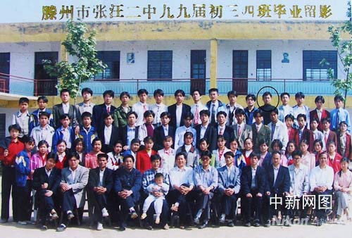 圖為張鵬的中學(xué)畢業(yè)合影照(最后排右起第五位是張鵬)。
