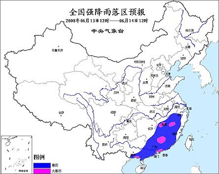 預計今天中午到明天中午,湖南東南部、江西中南部、浙江西部、福建大部、廣西東部和南部、廣東等地有暴雨,其中,廣西南部沿海、廣東北部和南部沿海、江西南部和中部、福建西北部等地的局部地區(qū)有大暴雨。