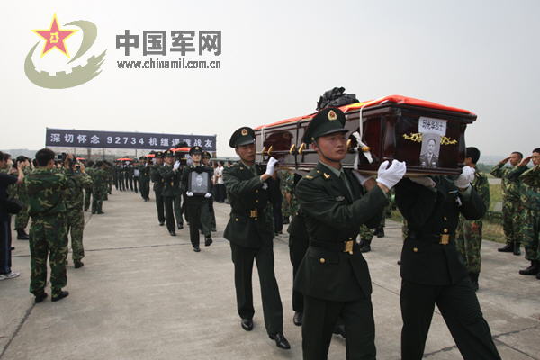 今天上午10時30分,運(yùn)送失事直升機(jī)機(jī)組成員靈柩的汽車,緩緩駛進(jìn)某陸航團(tuán)鳳凰山機(jī)場。迎送烈士靈柩儀式正式開始。(圖片來源:中國軍網(wǎng);周朝榮/攝)