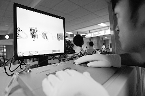 X光檢測機的屏幕上顯示出乘客包裹中的物品。 本報記者 王申 攝