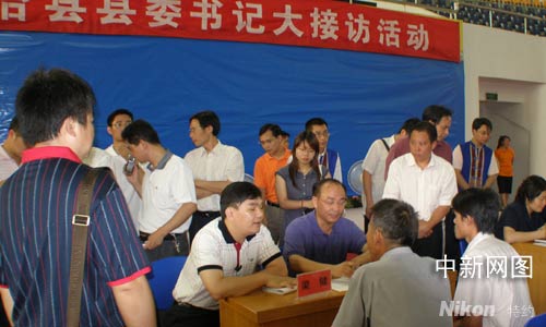公開接訪從上午八點(diǎn)三十分開始,到十一點(diǎn)三十分結(jié)束。接訪現(xiàn)場等待的群眾共有三百多人,共受理了六十五人的接訪材料,其中該縣委書記梁健親自受理了三十多件。