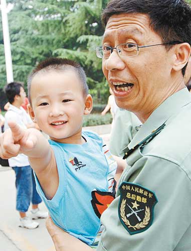 ·“敬禮娃娃”郎錚:“這個(gè)親我的爺爺是誰”(圖)