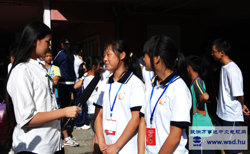 《歐洲萬事達(dá)報(bào)》十三歲的特約小記者陳藝捷采訪了地震災(zāi)區(qū)的學(xué)生劉一姍與趙宇,他們告訴記者,我們來到這里很快樂,剛開始不是太習(xí)慣,因?yàn)槲覀兯拇◥鄢岳苯罚艘岳睘橹鳎@里的匈餐很少吃到辣的菜,在飲食方面開始有些不適應(yīng),現(xiàn)在好多了慢慢適應(yīng)了。(文/宋聚芳 攝影/陳雷)