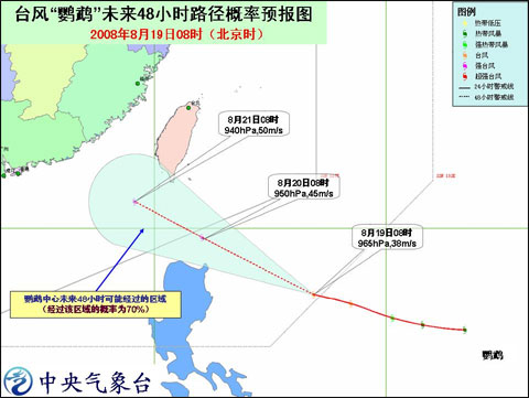 臺風“鸚鵡”未來48小時路徑概率預報圖