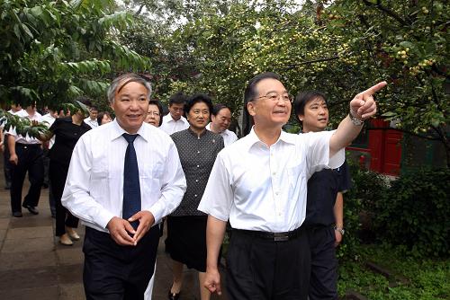 修竹環繞,海棠玉立,石榴樹上結滿了果實。9時30分,溫家寶在國務委員劉延東的陪同下,和教師們一起走進這個寧靜溫馨的院落,一一參觀了周恩來生前的辦公室、臥室、書房、會見廳等處。工作人員向客人仔細講解每一處地方。教師們認真地傾聽,連走路都放輕腳步。