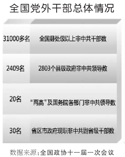 黨的十七大提出,要“選拔和推薦更多優(yōu)秀黨外干部擔任領(lǐng)導職務(wù)”,非中共干部培養(yǎng)選拔邁上新臺階。截至目前,全國擔任縣處級以上職務(wù)的非中共干部共3.1萬余名,數(shù)量明顯增多,結(jié)構(gòu)進一步優(yōu)化。