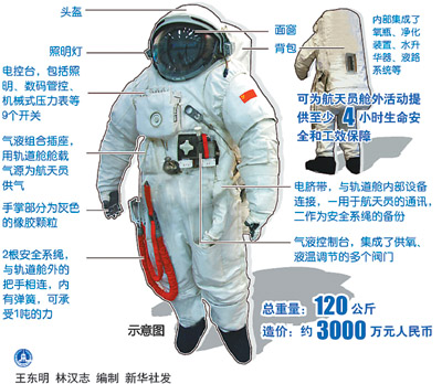 在神七任務(wù)中,航天員將首次身穿國產(chǎn)艙外航天服“漫步”太空。記者就此采訪了中國航天員科研訓(xùn)練中心主任陳善廣,聽他將艙外航天服的“玄機”一一道來……