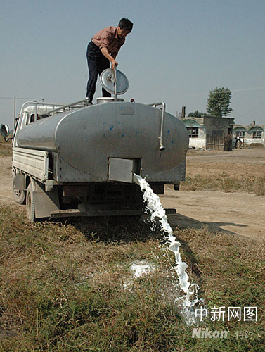 中新網(wǎng)9月29日電(武為民)“三鹿奶粉”事件發(fā)生后,山西奶業(yè)生產(chǎn)受到?jīng)_擊。奶牛養(yǎng)殖大縣山陰縣,幾個奶牛養(yǎng)殖大戶此前將前一天擠的1萬斤鮮奶傾倒在河溝里。白嘩嘩的牛奶匯成小河。因乳品企業(yè)停產(chǎn)整頓,收奶站負(fù)責(zé)人隱匿找不到,無耐的奶農(nóng)只好將牛奶倒掉。