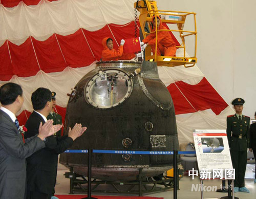 中新網(wǎng)北京10月1日電 (記者 孫自法)值此國(guó)慶佳節(jié)之際,神舟七號(hào)載人飛船返回艙一日在其“娘家”——北京航天城內(nèi)的中國(guó)空間技術(shù)研究院開艙,陪伴三位中國(guó)航天員巡游太空歸來(lái)的“乘客”一一精彩亮相,隨后各歸其主。