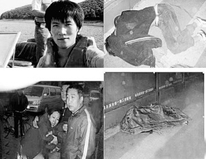 潘興聽到楊森喊,隨即看到林松嶺赤著上身很快跑過去,后面幾人在追。潘興回憶,當天林松嶺穿著一件黑色的小風衣,“外套是他自己脫掉的,但襯衫怎么沒有了我不知道。”潘興追出去幾十米后,看到林躺在地上,身體蜷曲著。“我扒開正在打松嶺的人說別打了,后面就有人抓住我的頭發把我摁住,不知道有幾個人照著我的頭不停地踢。”