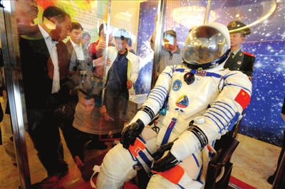 據(jù)了解,這套航天服是我國完全自主產(chǎn)權,價值約100萬元,身高160厘米至175厘米的人都可以穿上。(記者王晴)
