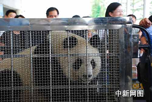 中新網杭州10月22日電(見習記者 夏毅)記者今天從杭州蕭山機場獲悉,國寶級的二只大熊貓于今天下午抵達杭州機場后,立即動身前往他們的新家——浙江安吉竹博園落戶。