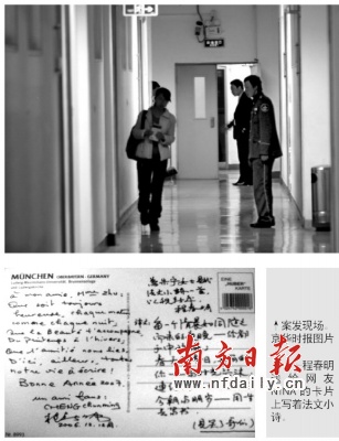 發(fā)言人的介紹,也證明了部分網(wǎng)友博客中的說法。網(wǎng)友“夜江湖”稱:“昨晚大家在各宿舍討論案情,一說到兇手的專業(yè)、籍貫,馬上就想到一個人:F某某。一查證,果然就是這個人,就住在我們樓下。在校內(nèi)網(wǎng)上,還能看到他的照片,長得很斯文。”
