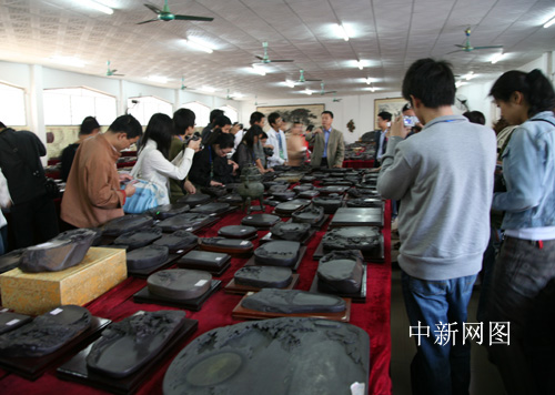 中新網肇慶11月12日電 12日下午,參加“全國重點網絡媒體廣東行”的記者一行數十人,抵達中國硯都——廣東肇慶。記者們有幸觀賞了大批精美的端硯藏品,并走訪了端硯的制作現場。