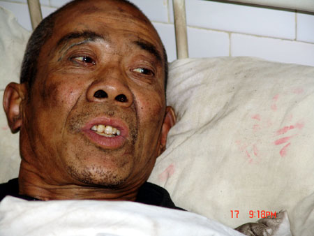 躺在病床上的張國棟介紹獲救經(jīng)過