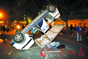 中堂開達玩具廠沖突事件中,有警車被砸壞、掀倒。王子恒 攝