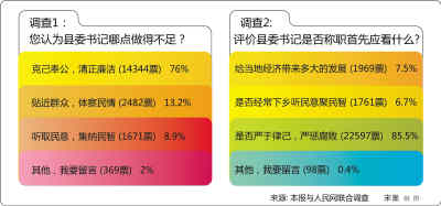 記者:來這里之前,我們和人民網做過一個調查,有76%的網友認為,現在的縣委書記在“克己奉公,清正廉潔”這方面做得不足。請各位談談基層“一把手”的監督現狀?