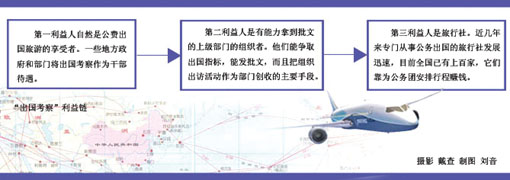 第三利益人自然就是旅行社。據(jù)了解,近幾年來(lái)專門(mén)從事公務(wù)出國(guó)的旅行社發(fā)展迅速,目前全國(guó)已有上百家,集中在廣州、上海、北京、南京、寧波等地。它們靠為公務(wù)團(tuán)安排行程賺錢(qián)。“現(xiàn)在各級(jí)各地組織的出境、出國(guó)考察活動(dòng),絕大部分是通過(guò)旅游公司出去、并由境外旅游機(jī)構(gòu)接團(tuán)安排行程的,其實(shí)就是公款旅游。”新余市委一位干部對(duì)記者說(shuō)。