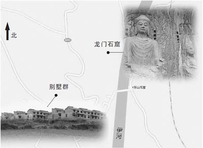 龍門石窟及在建別墅群示意圖。宋嵩制圖