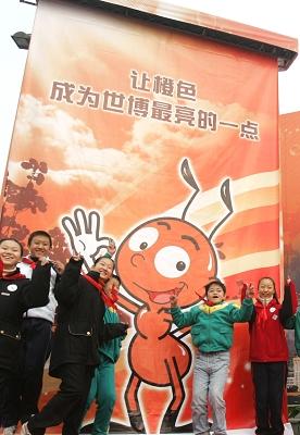 20日,代表志愿者的橙色成為申城的主打色。作為世博城市文明志愿者的一個集中活動日,逾5萬名志愿者走上街頭、走進社區,開展以世博宣傳、交通文明和環境保護為主要內容的志愿服務活動,服務項目共計1000余個。在活動主會場——和平公園,以勤勤懇懇的小螞蟻為原型的世博城市文明志愿者卡通形象“小志”正式揭曉,將在今后不到兩年的時間內傳遍上海的大街小巷。