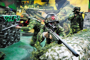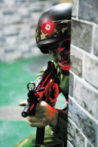 該團組建于1951年,參加過抗美援朝戰(zhàn)斗,是一支能征善戰(zhàn)的部隊。為提高訓練效益,該團借鑒CS網(wǎng)絡游戲模式,以城市巷戰(zhàn)為背景,通過點光、面光、導向照明及數(shù)碼成像相結(jié)合的燈光設計,使一個對抗系統(tǒng)能夠滿足黃昏、白晝、黑夜三種作戰(zhàn)環(huán)境需求。為最大限度接近實戰(zhàn)模擬,系統(tǒng)配備了激光仿真槍、頭盔、馬甲、仿真手雷、匕首等器材和用來記錄成績、設置子彈數(shù)量、游戲人員生命次數(shù)及對抗時間的控調(diào)設備,勝負成敗一目了然。為突出戰(zhàn)法運用,在場地設計上采用可移動實景戰(zhàn)術障礙物的設計,高板與矮墻結(jié)合、既設布景與就便器材并用,戰(zhàn)場環(huán)境可隨機調(diào)整,使每次對抗都能在一個全新的環(huán)境中進行。