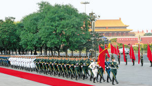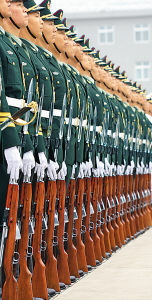 中國人民解放軍陸海空三軍儀仗隊主要擔負迎送外國元首、政府首腦、軍隊高級將領及紀念、慶典等重大國事活動的儀仗司禮任務。禮儀是一個國家文化的精華,軍人執行的國禮、軍禮更是一種精粹。三軍儀仗隊建隊以來,先后圓滿完成了外國首腦訪問,香港、澳門回歸政權交接儀式升國旗,奧運會、殘奧會開閉幕式國旗升降、頒獎等3000多次儀仗司禮任務,被中央軍委授予“軍旅標兵”榮譽稱號,贏得了國內外公眾和輿論的廣泛贊譽。朱民、劉桂利、張力攝影報道