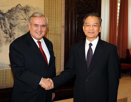 中新網2月10日電 據中央電視臺報道,中國國務院總理溫家寶今天(2月10日)在中南海紫光閣會見了由法國前總理拉法蘭率領的法中友好代表團。溫家寶指出,當前中法關系出現困難,責任不在中方;法方應采取切實行動,對中方重大核心關切作出積極、正面回應。