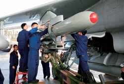 不久,機群突然從雷達屏幕上消失。記者了解到,這是戰機在作超低空飛行,飛行高度已降至××米,進入了雷達探測的“盲區”。天上有衛星偵察,空中有“敵”預警機盤旋,海上有“敵艦”雷達和導彈警戒,必須超低空突防才能隱蔽接“敵”,攻其不備。