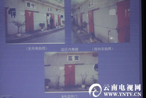 在今天上午的通報會上,晉寧縣公安局進行了通報情況,死者李喬明,25歲,白族,死亡原因是因為同監(jiān)舍在放風時候玩游戲,因為在游戲時發(fā)生口角,其中一名踢了死者一腳,導致撞在鐵柱上,導致頭部受傷致死。晉寧縣公安局制作事件發(fā)生地點圖片,提供給調查團一行。(來源:云南電視網)
