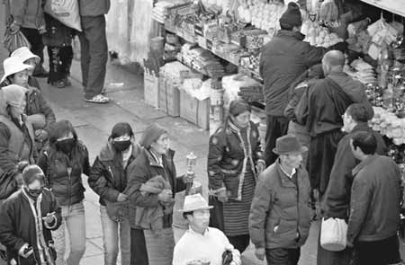———青藏鐵路通車給西藏旅游事業帶來勃勃生機,2007年接待游客超過400萬人次,而這一數字在1980年僅為3500人次,旅游業成為西藏的一大支柱產業。