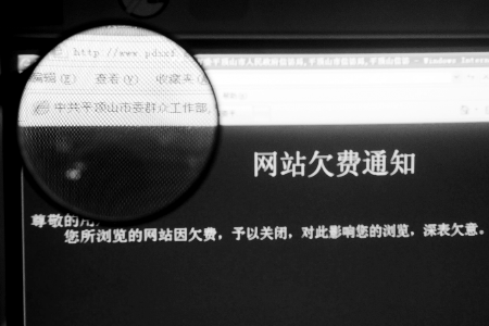 讓他感覺不可思議的是,網站頁面紅底白字寫著一則欠費通知:“尊敬的用戶:您所瀏覽的網站因欠費,予以關閉,對此影響您的瀏覽,深表欠(歉)意”,落款日期為2008年12月。