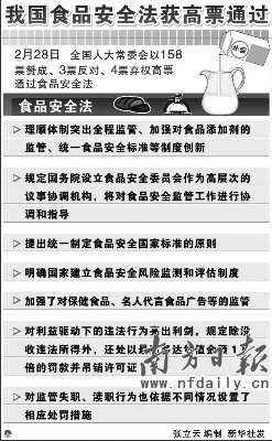 昨日,十一屆全國人大常委會經表決,以158票贊成、3票反對、4票棄權高票通過了食品安全法。