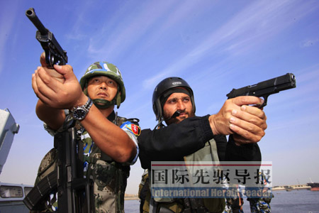 隨艦而來的,還有10名中國海軍特種部隊隊員,他們將參演港岸特種部隊演練。隊長孫浩少校告訴《國際先驅導報》,這次是中國海軍特種部隊首次成建制踏上國際舞臺,將與美國、土耳其、孟加拉國和東道主巴基斯坦等國的特戰隊員同臺競技,10名隊員都經過了精心準備,上天能飛行、跳傘,下海能潛水,能熟練使用多種武器,還能運用外語和外軍同行交流。